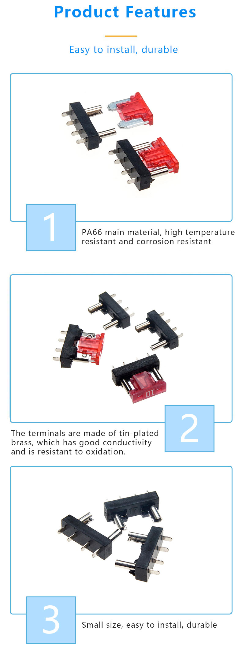 Tinned Plated Brass Terminal PCB Mount ATT Low Profile Micro Blade Fuse Holder Clip